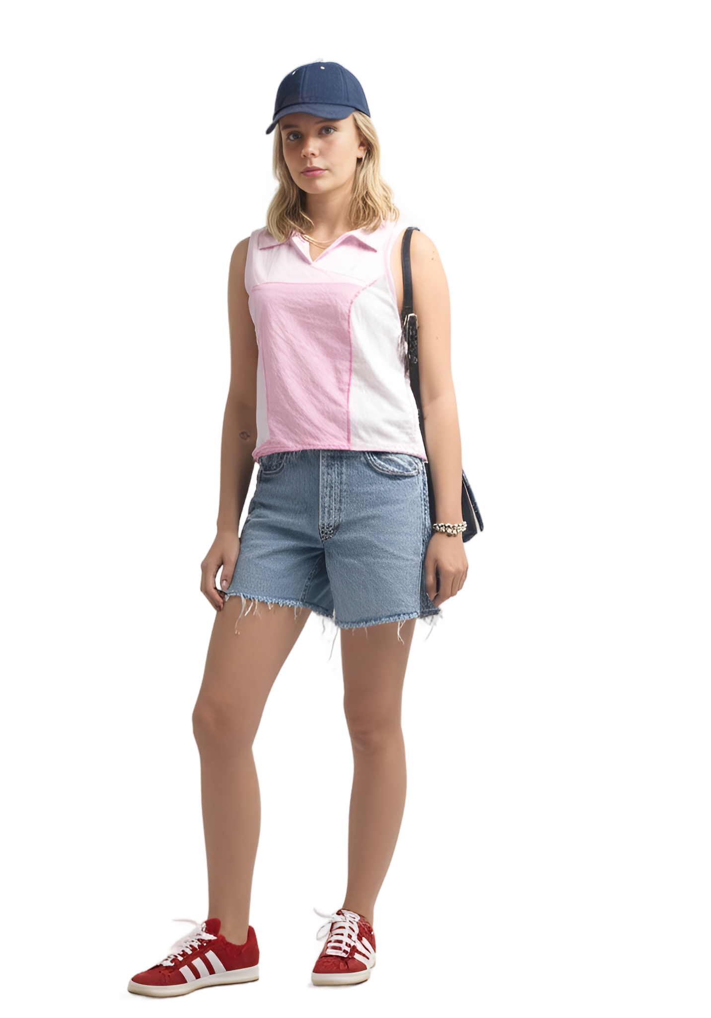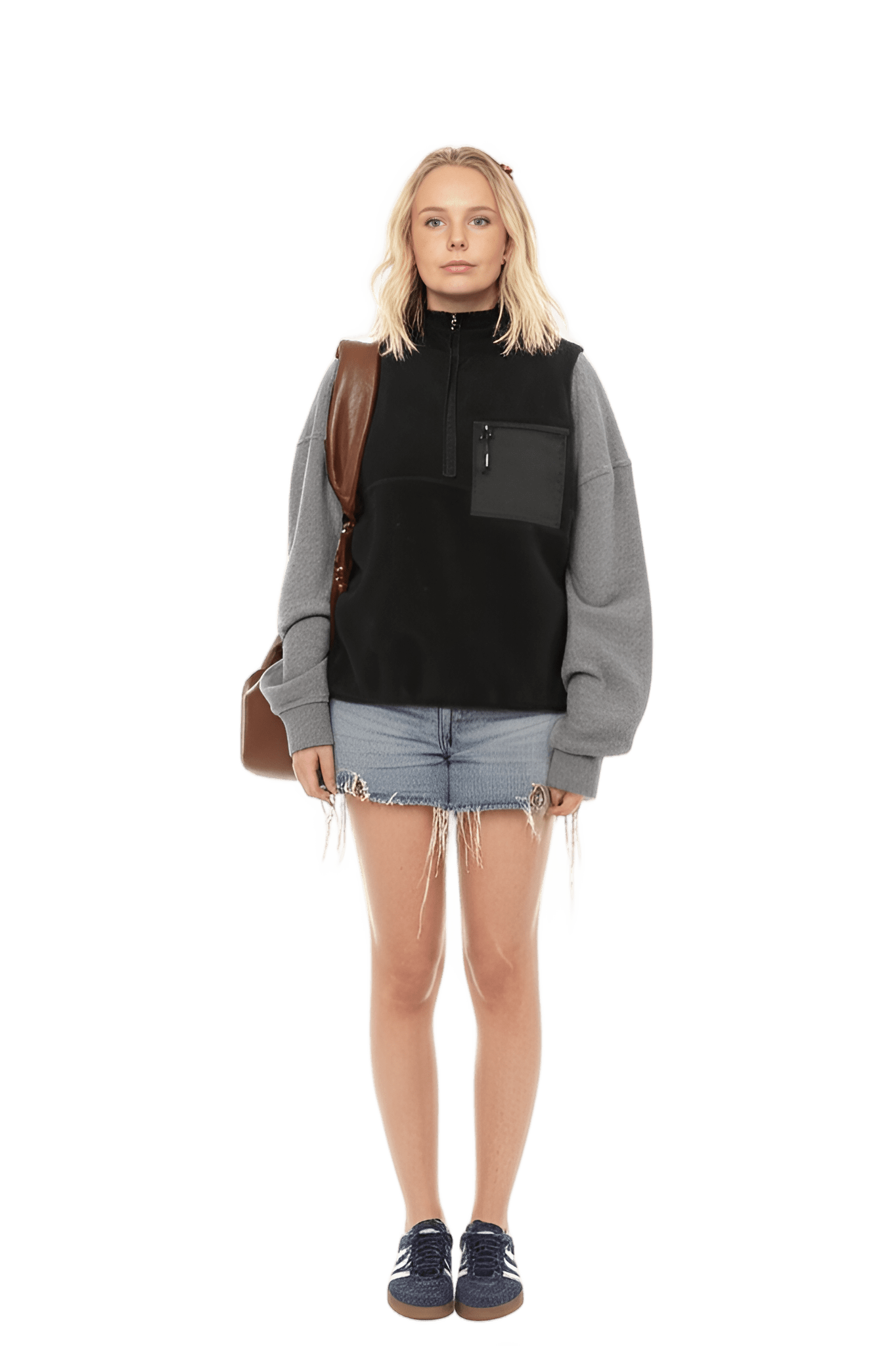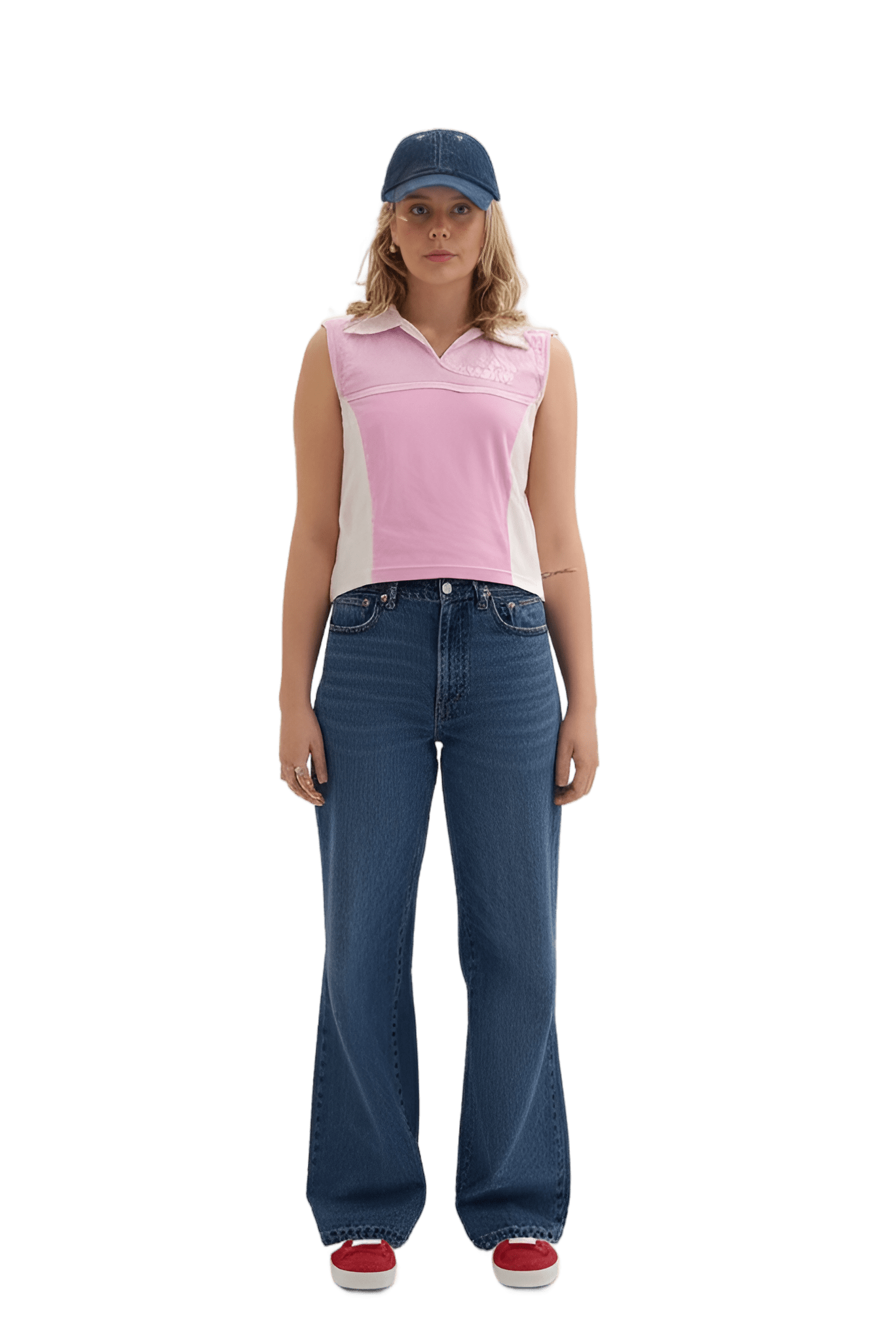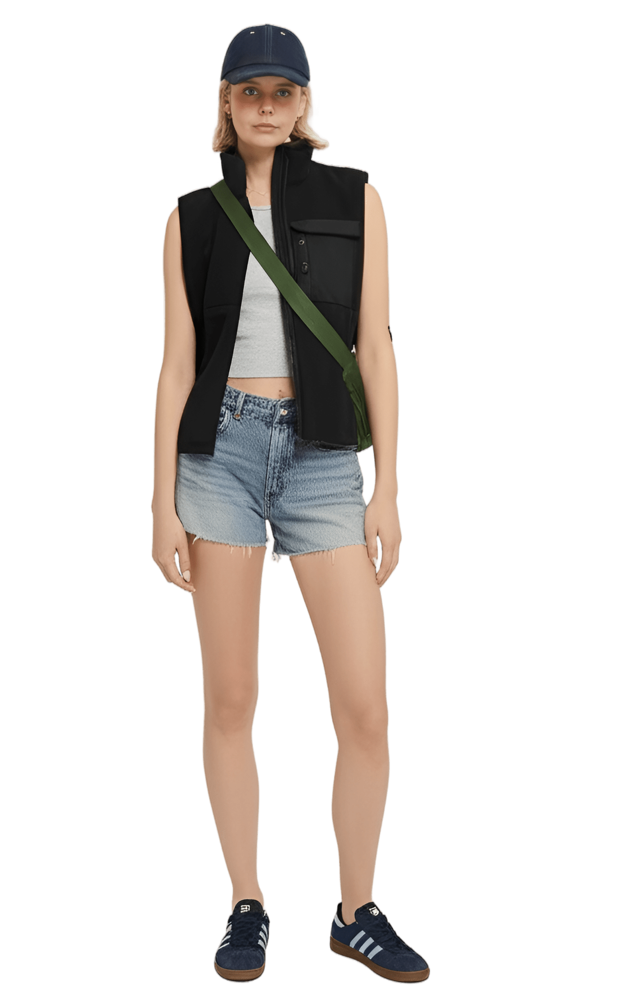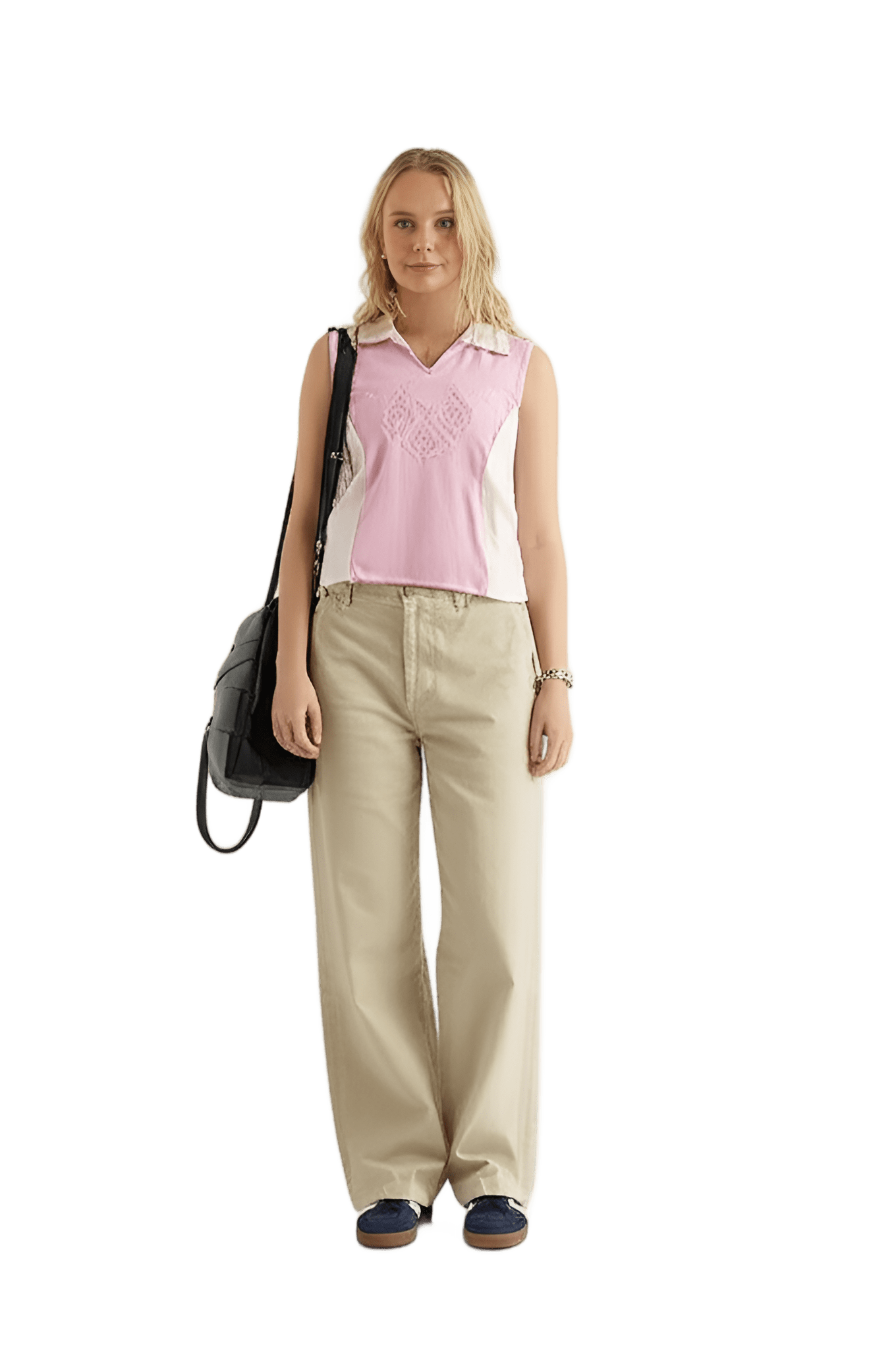 Sån här stil I want like the picture But i have a flower vest: white short-sleeved t-shirt pink fleece oversized vest black cotton cargo trousers - Park Picnic