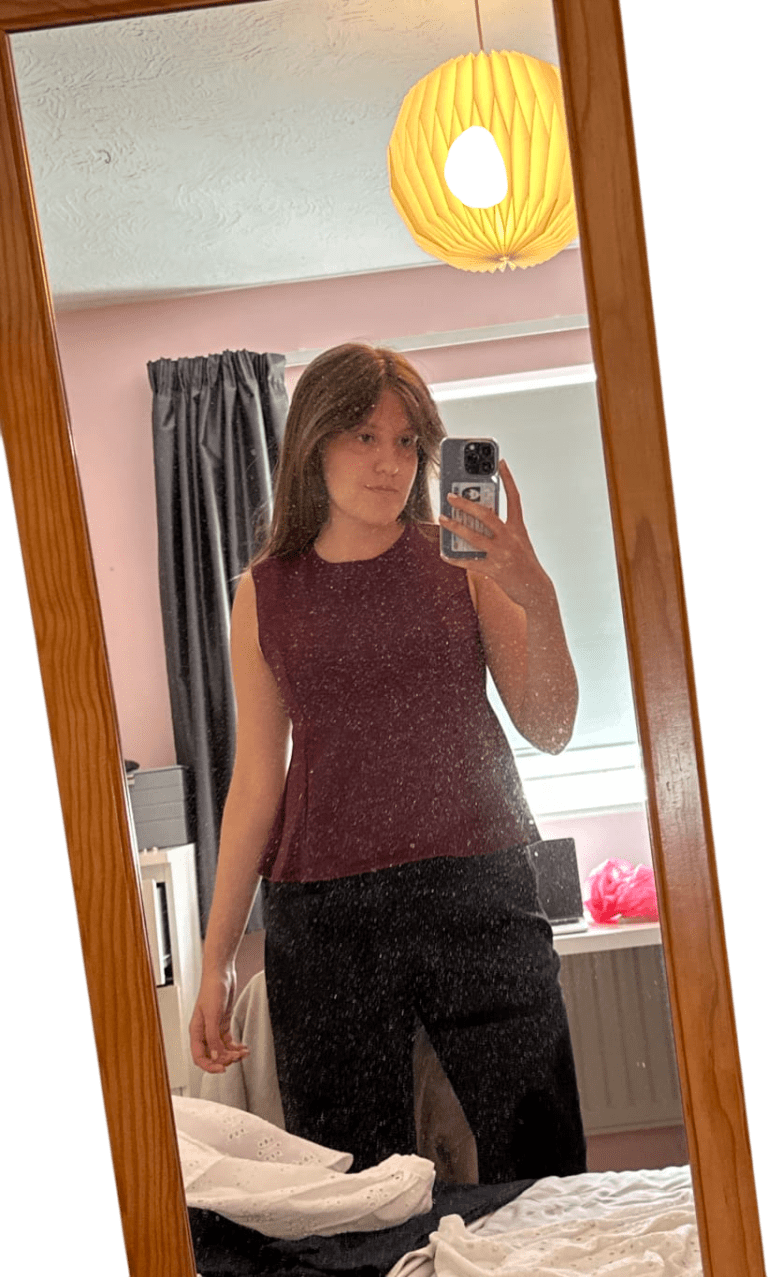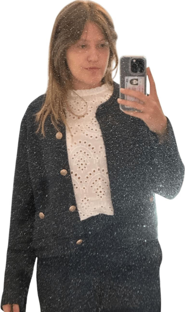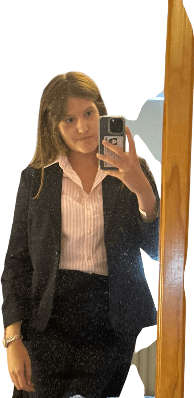 Can throw blazer. PULL TROUSERS UP