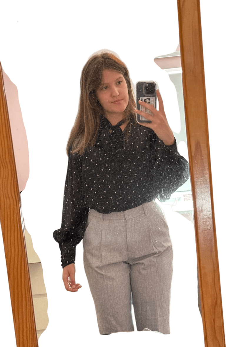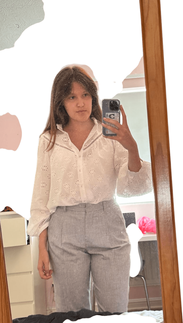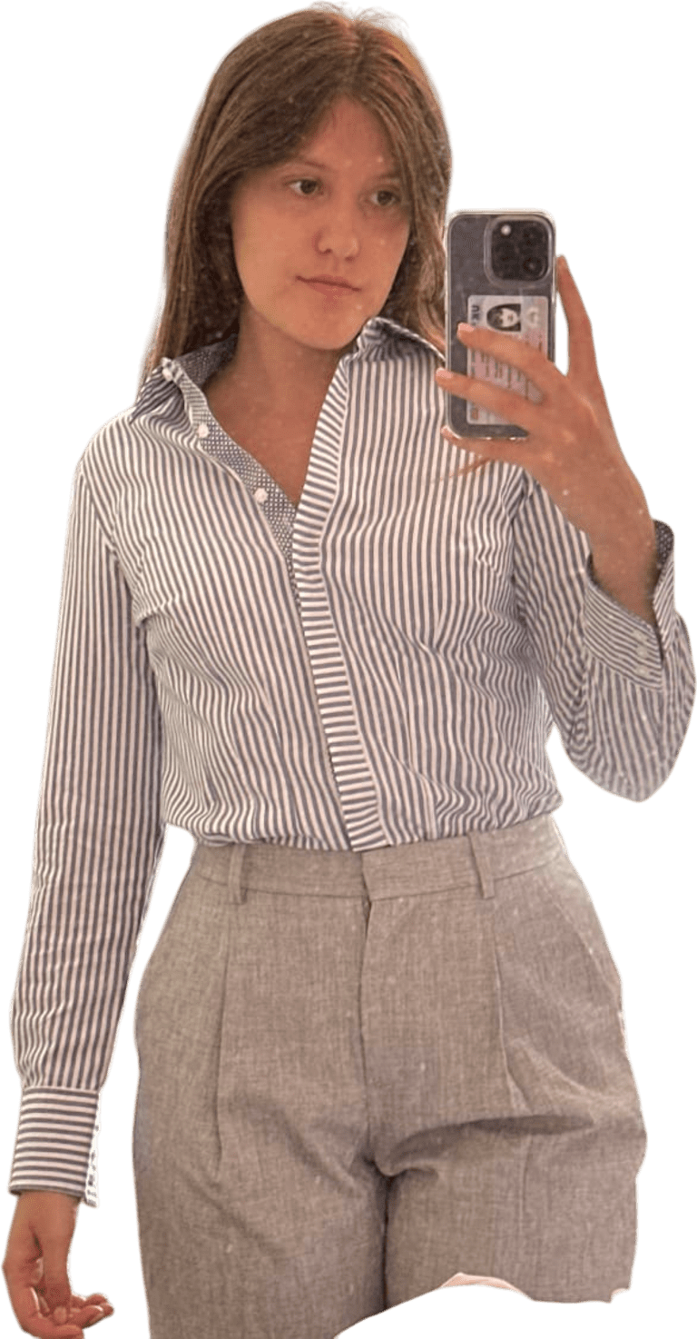 Can throw blazer. PULL TROUSERS UP