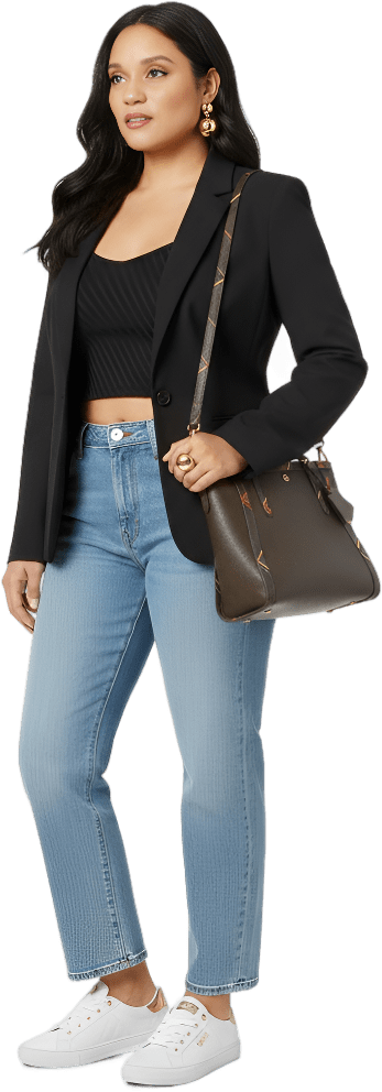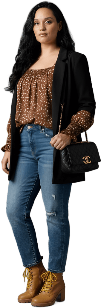 Act as a stylist and give me inspiration to new outfits Act as a stylist that give unique twists to tends and make me fashionable this fall season with new looks that each piece is $25 or less and include trendy shoes or sneakers no high heels but kitten heels are fine also tall boots Can I see more outfits with new affordable pieces that look expensive but are very afforable - Urban Luxe