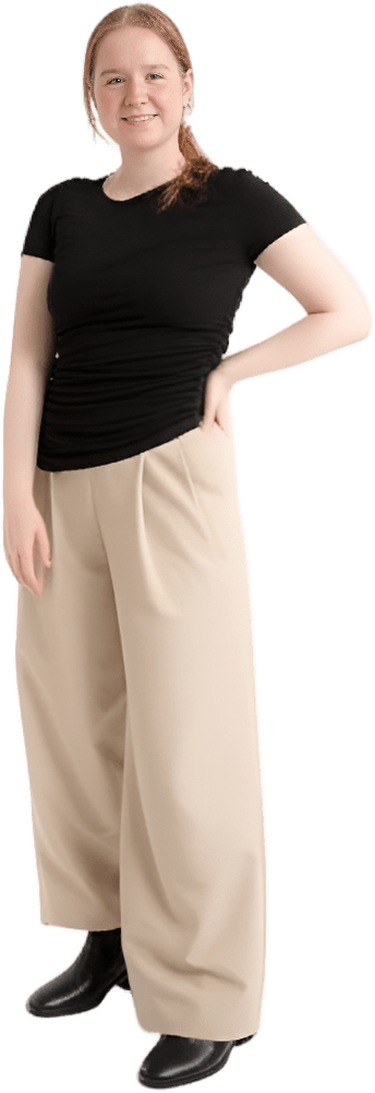 Black ruffle beige pants