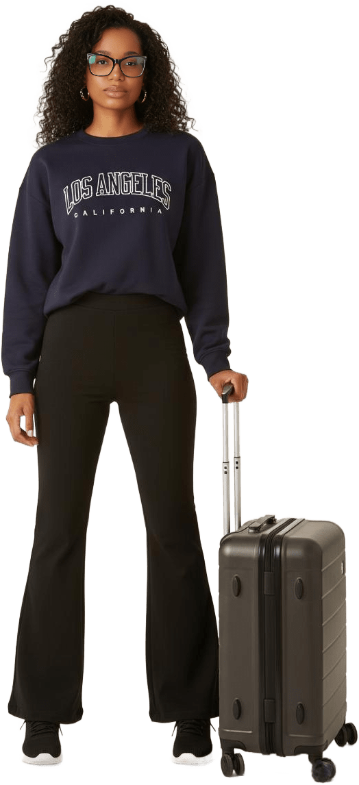 Comfortable but cute airport outfits Airport outfit with sneakers only and no hats Airport outfit sneakers no hat and incorporating jeans jacket or blue pull over sweater Airport outfit cute but comfortable with sneakers only Airport cute but comfortable, suggestions welcome Chic joggers and a stylish hoodie Airport look using these items as you suggest and making sure I have layers as the airport is cold. I want to be cute but still comfy. Open to suggestions of accessories etc - Flight Leisure