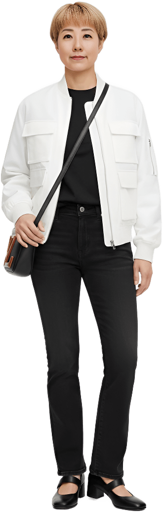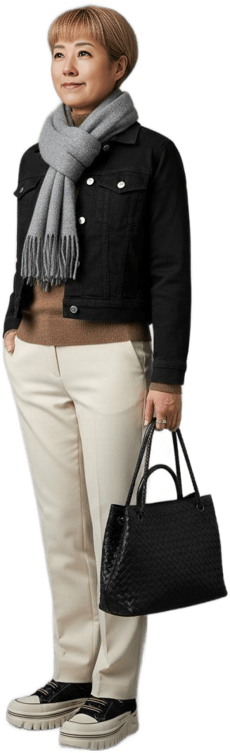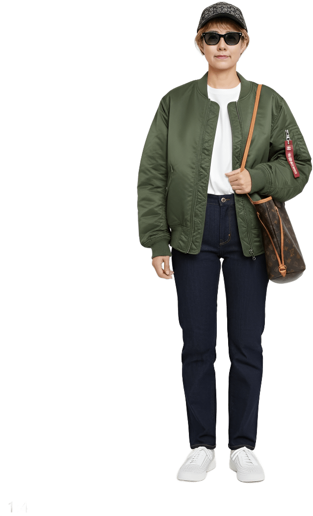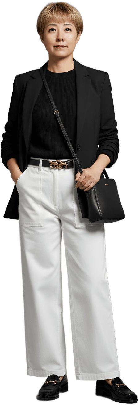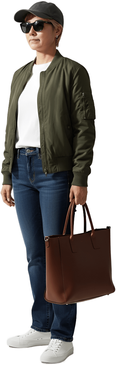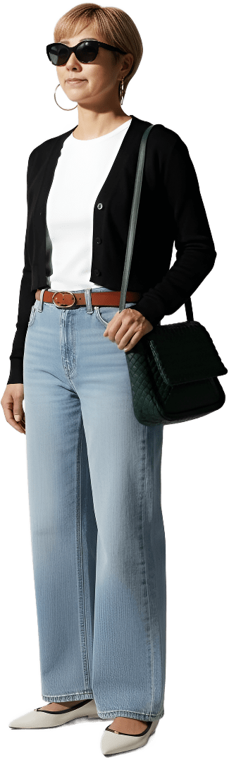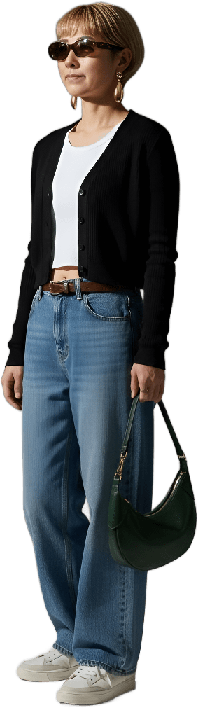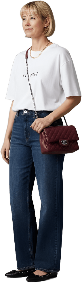 I’m going shopping today. Please style me effortlessly polished with sneakers - Shopping Casual