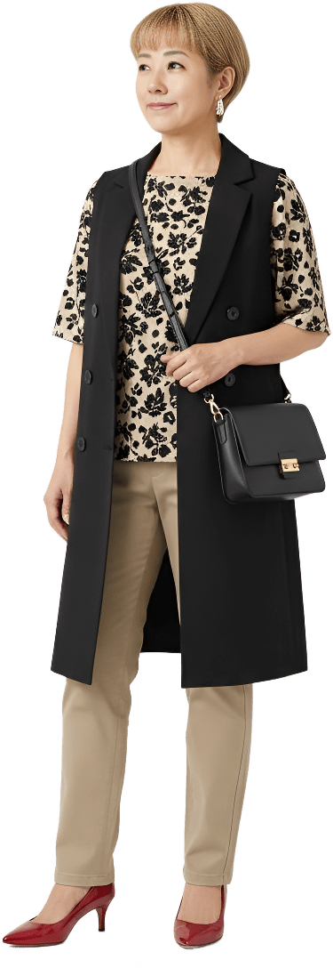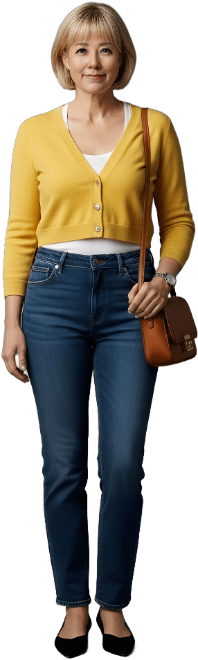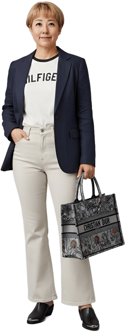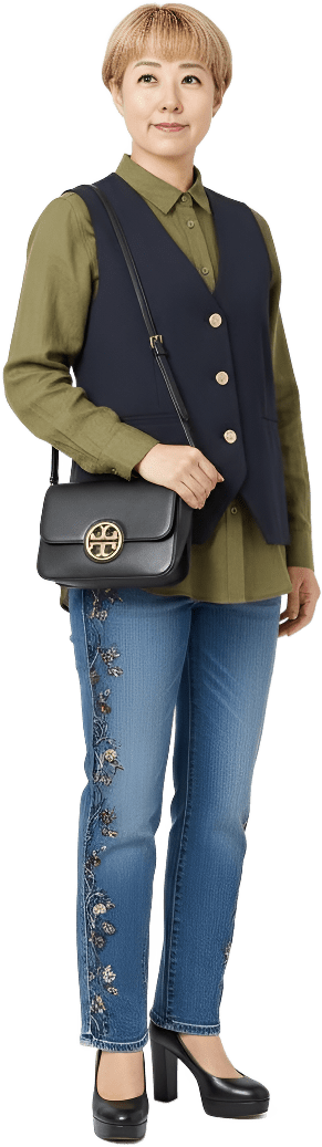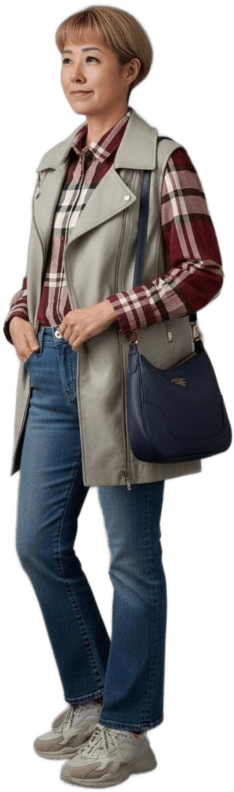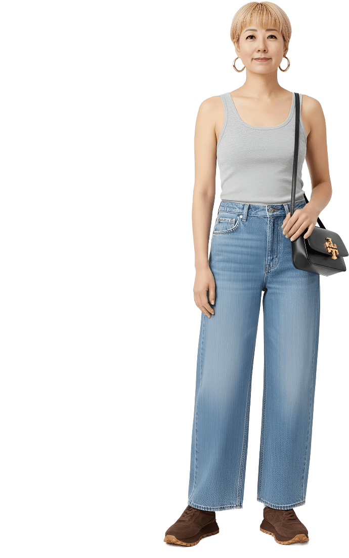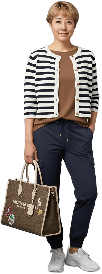 I’m going shopping today. Please style me effortlessly polished with sneakers - Shopping Casual