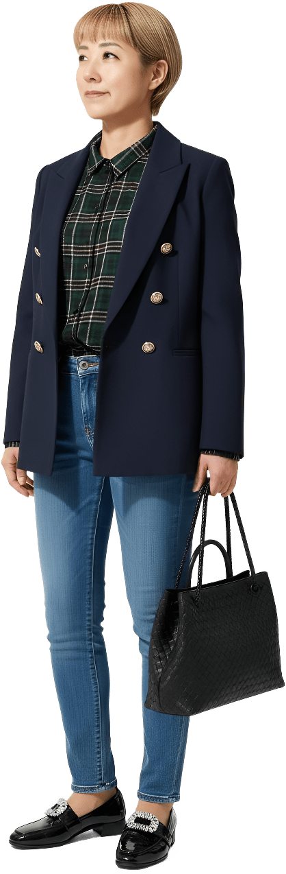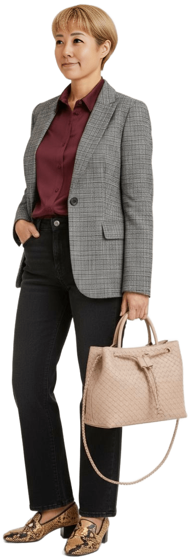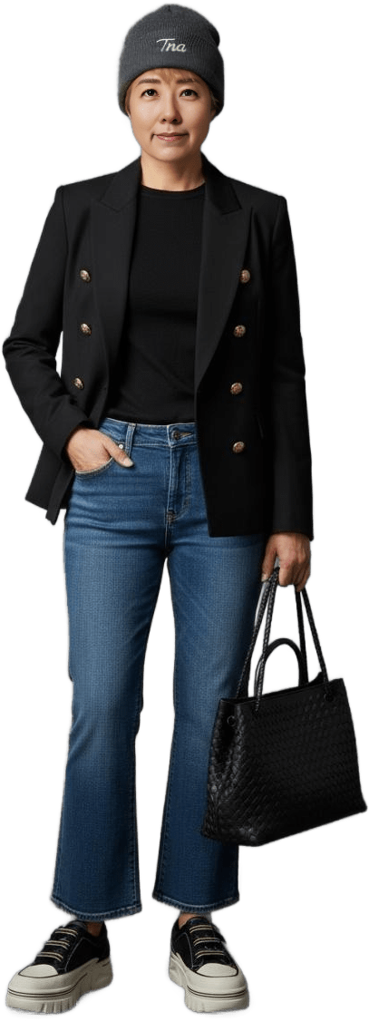 Could you style me with a blazer, jeans and sneakers for shopping mode? - Weekend Explorer