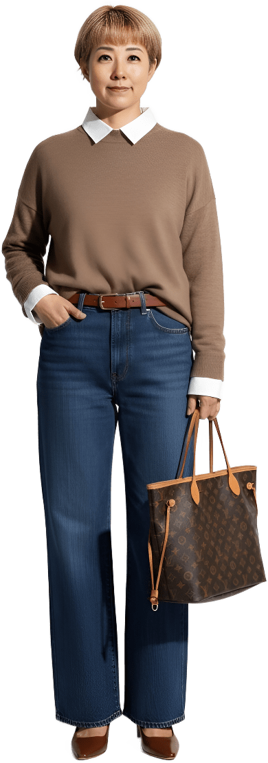 When coordinating outfits, please match pieces with similar seasonal thickness. Don’t mix winter and spring clothes. Right now, style a casual look around a brown sweate - Weekend Market
