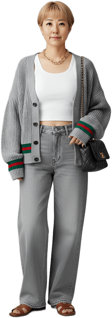 Please find Lauren Toufe knit shawl cardigan from my closet and match a pair of pants and shoes - Knitted City