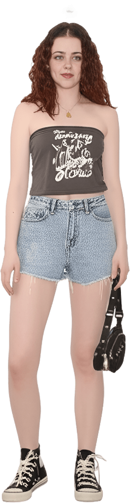 I want a pair of shorts with a light blue top that reaches the belly and the converse with the bag from Japan - Japan Daytrip