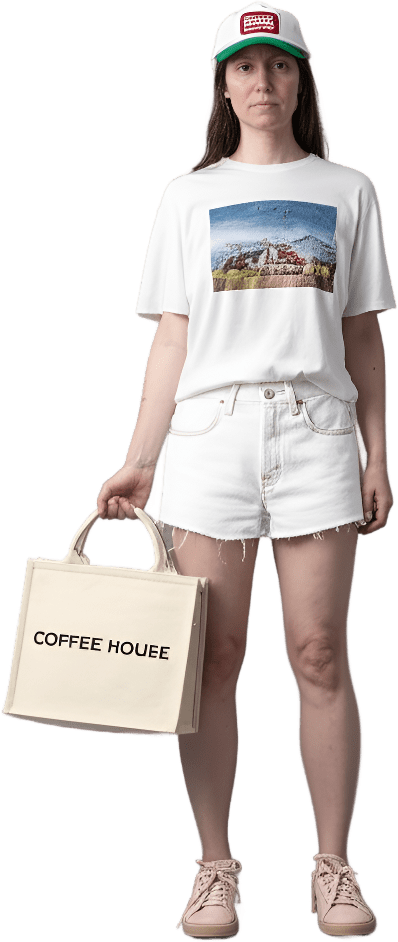 Simple outfit for morning at coffee shop and Quaker meetinghouse - Cafe Morning