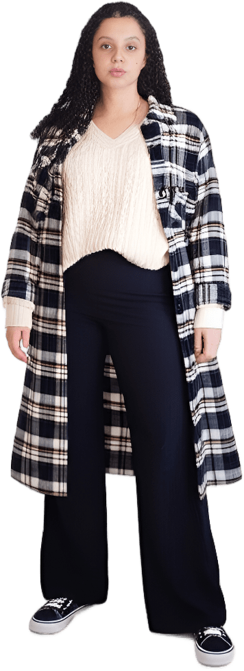 Me ajuda escolher uma roupa pra minha aula da faculdade amanhã, o tem vai estar máxima de 17° e mínima de 12° e 20% de chance de chuva, quero algo quentinho - College Core